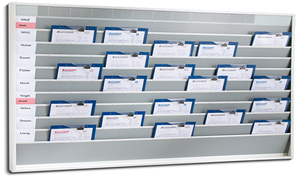 6 vrst - široka izvedba Planska tabla za torbice A4 s 6 vrstami (široka izvedba) * Širina 1575mm* Višina 900mm* Debelina 78mm